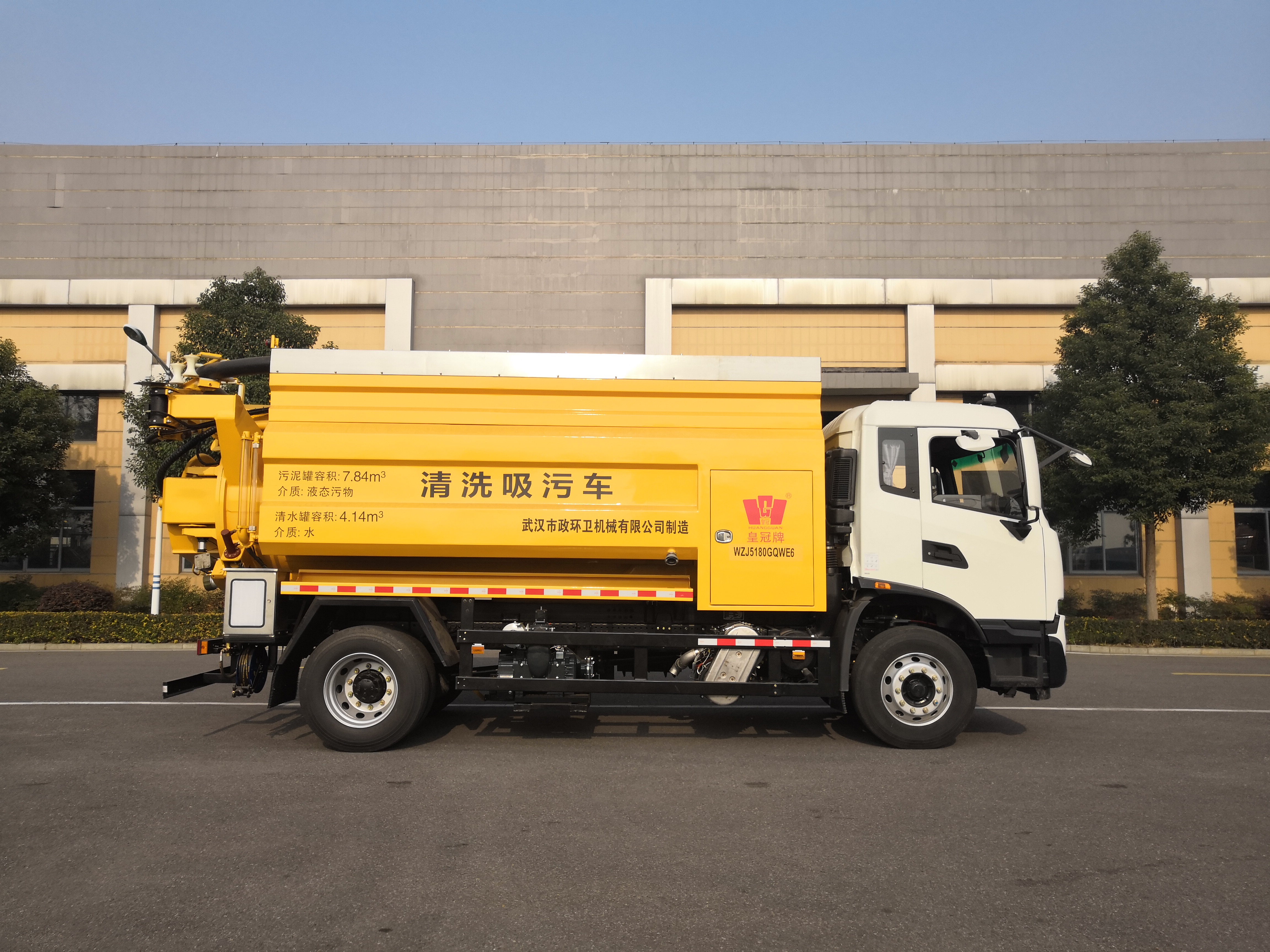 ? ???WZJ5180GQWE6?型清洗吸污車(chē)是武漢市政環(huán)衛(wèi)機(jī)械有限公司研發(fā)的集高壓清洗、真空吸污、污泥運(yùn)輸?shù)扔谝惑w的多功能聯(lián)合疏通車(chē);該車(chē)上裝部分的核心部分和液壓部件選自歐美國(guó)際知名品牌,選配國(guó)內(nèi)著名的東風(fēng)天錦底盤(pán)在國(guó)內(nèi)組裝而成,是國(guó)內(nèi)優(yōu)秀的聯(lián)合疏通專(zhuān)用車(chē)。它適用于地下排水管網(wǎng)疏通、污泥抽吸、清撈和裝運(yùn)等,并可通過(guò)單柱塞高壓泵產(chǎn)生的高壓水對(duì)地下污水管道進(jìn)行強(qiáng)力疏通沖洗,徹底清除堵塞下水管道的各類(lèi)淤積物和管壁上附著的堅(jiān)硬污垢;該車(chē)還配置全自動(dòng)污水循環(huán)再利用系統(tǒng),大大提高了工作效率。由于?WZJ5180GQWE6?車(chē)外形大小適中,可適應(yīng)城市各種工況條件,應(yīng)用于城區(qū)主干地下管線(xiàn)疏通和搶險(xiǎn)更加高效、方便、快捷。在歐美地區(qū),該車(chē)還廣泛應(yīng)用于工業(yè)廢料、有毒垃圾等液態(tài)廢棄物的抽吸、輸送和裝運(yùn)等。